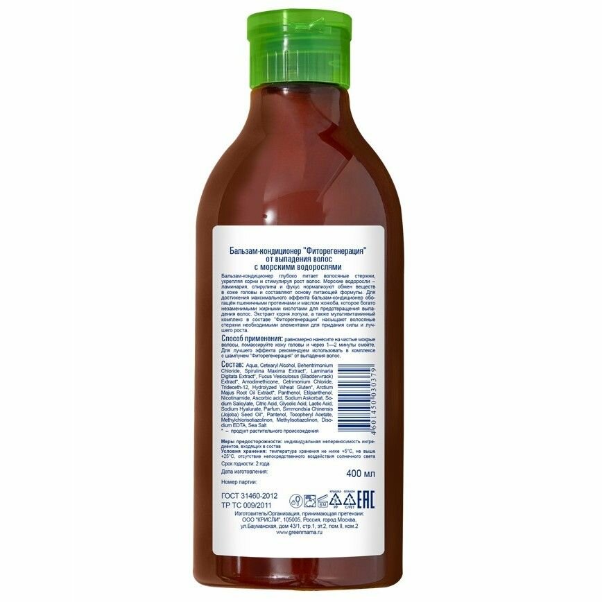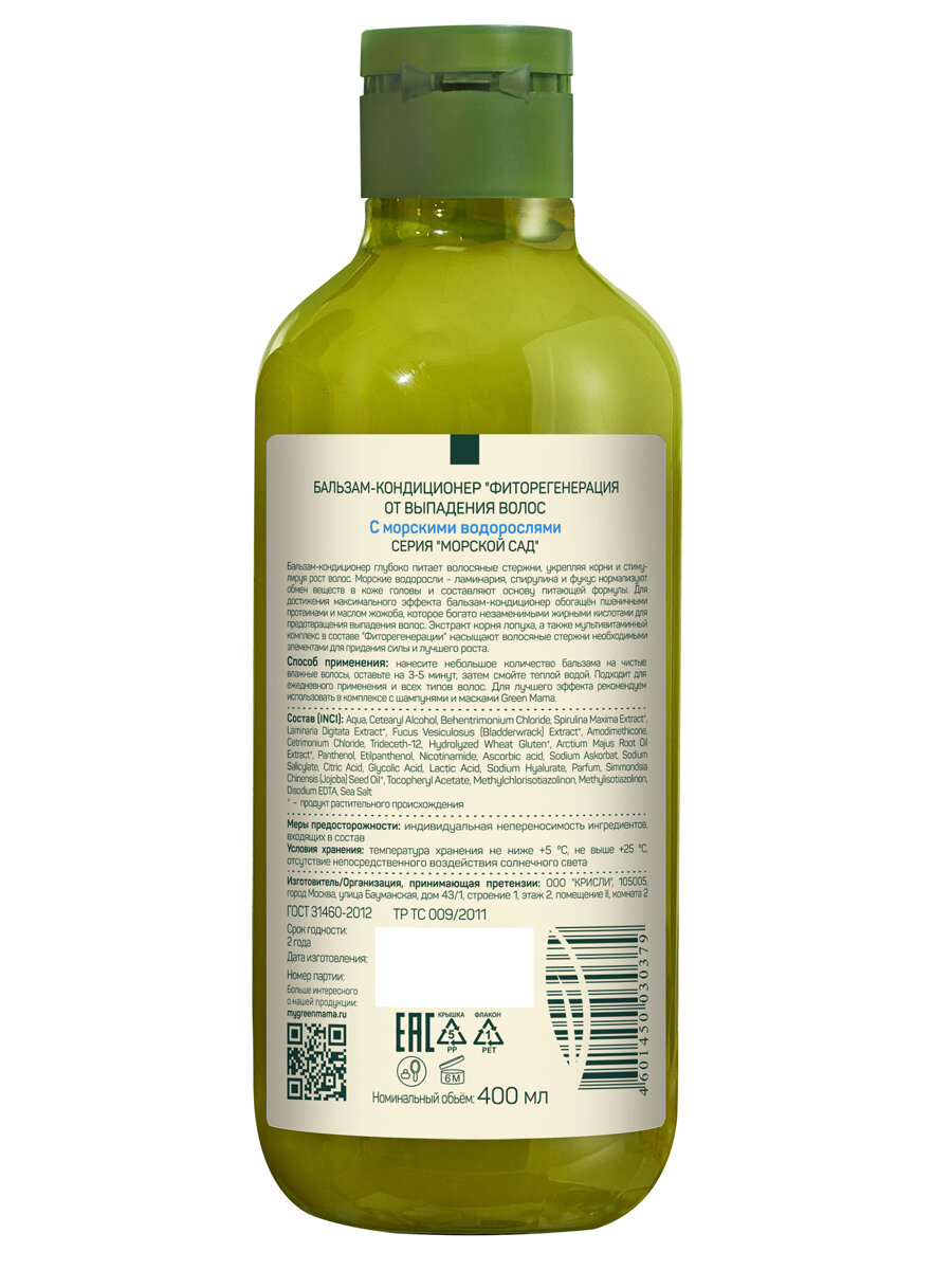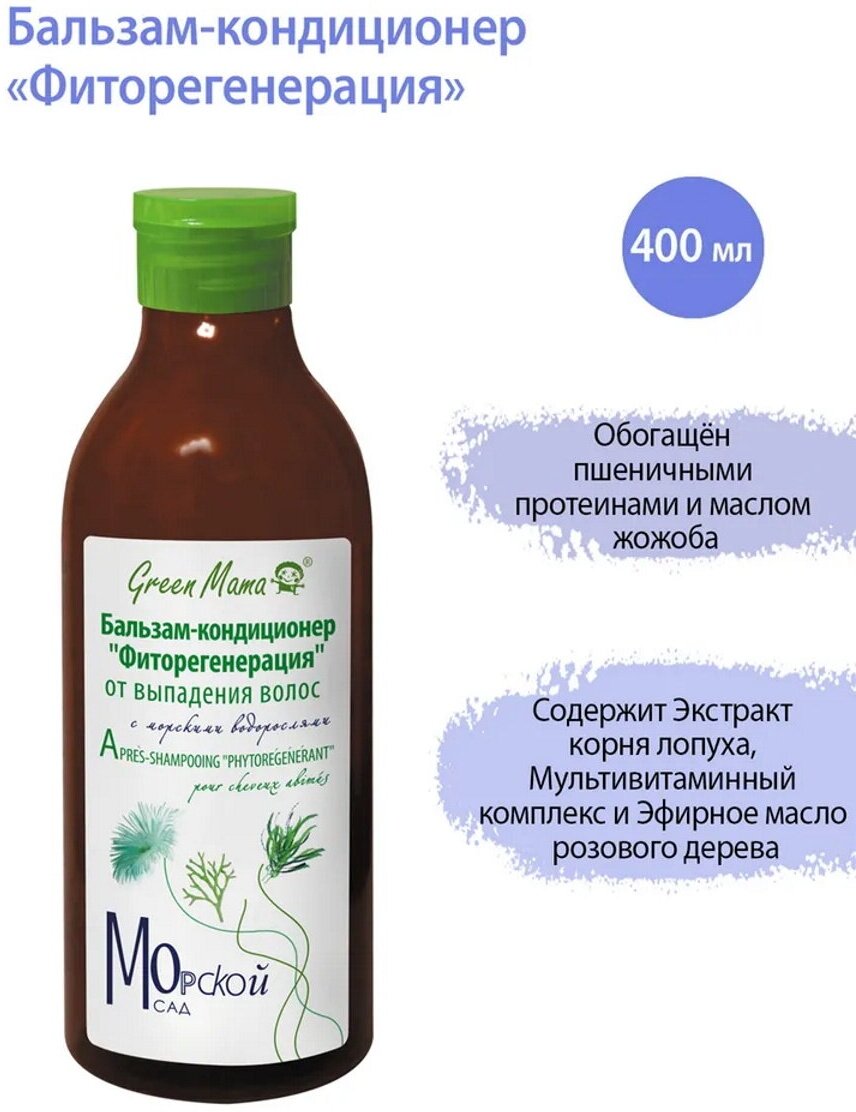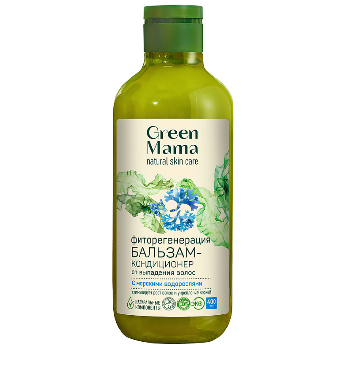 Бальзам-кондиционер Green Mama от выпадения волос с морскими водорослями Фиторегенерация 400 мл (379)