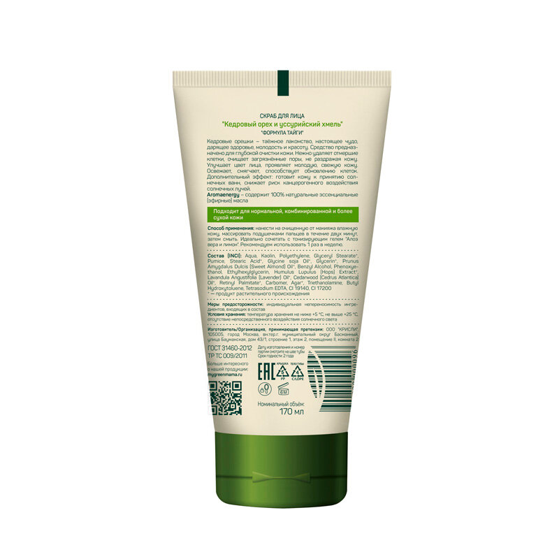 Скраб Green Mama Кедровый орех и Уссурийский хмель Отшелушивающий крем 170 мл (096)