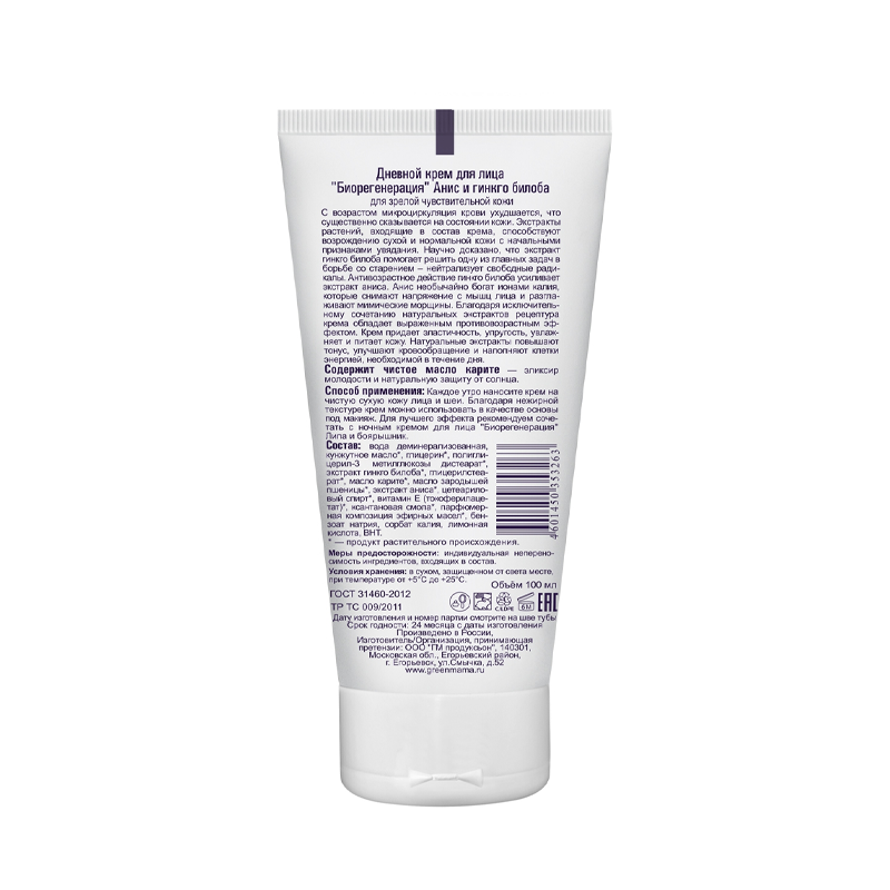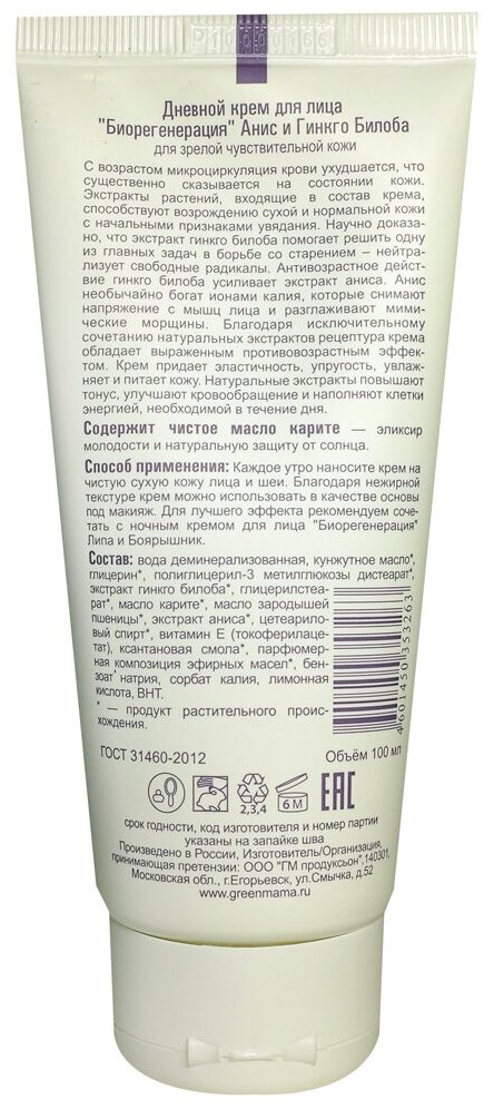 Крем Green Mama Анис и Гинкго Билоба Биорегенерация Дневной 100 мл (263g)