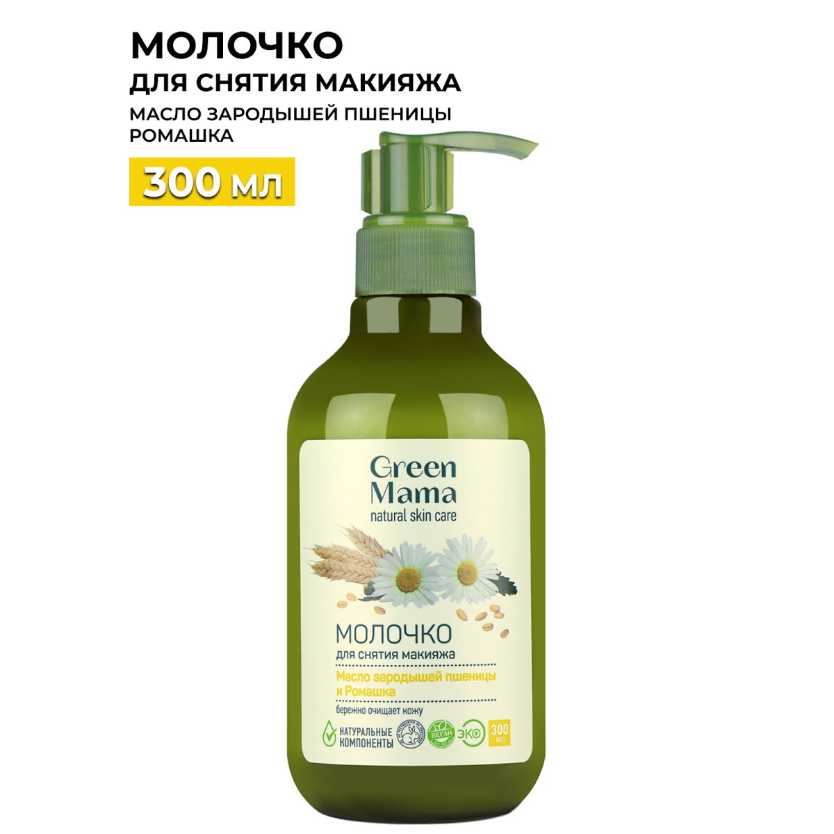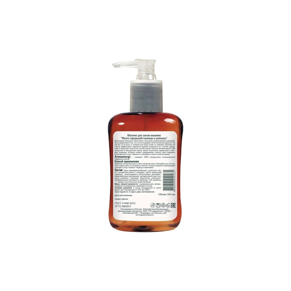 Молочко Green Mama для снятия макияжа Масло зародышей пшеницы и Ромашка 300 мл (285)