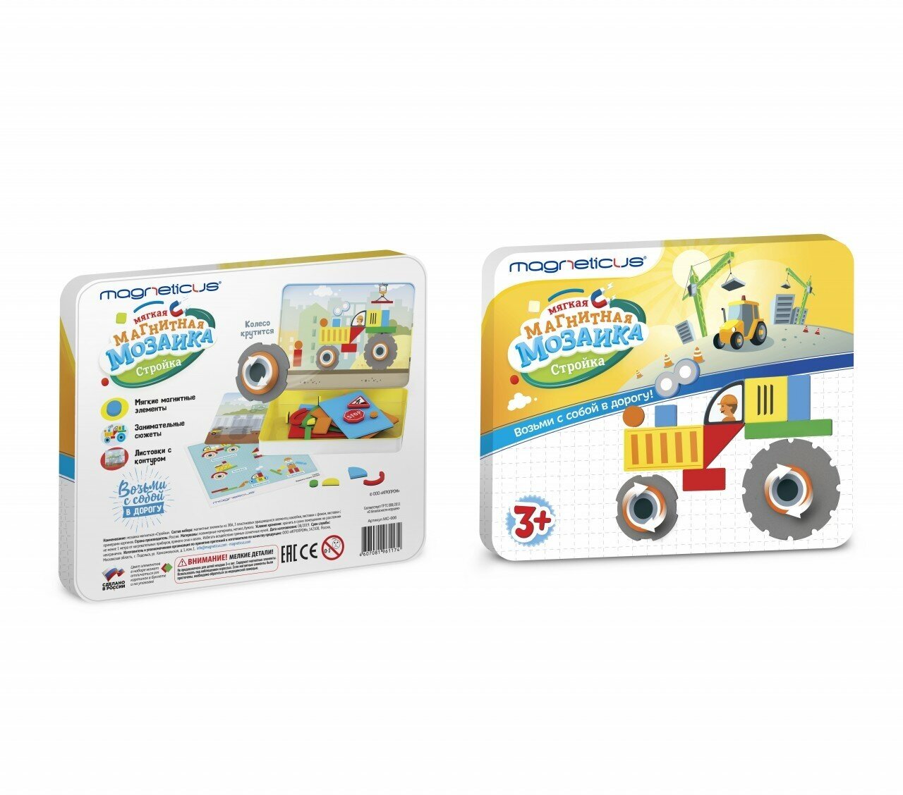 Магнитная мозаика Стройка Magneticus - мозаика со специальными мягкими магнитами из вспененного полимера 7 цветов, в наборе 21 магнитный элемент. Играя в этот набор ребенок познакоиться со строительной техникой в игровом формате.
