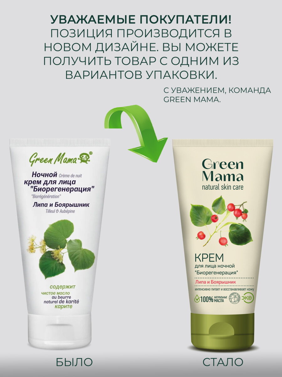 Крем Green Mama Липа и Боярышник Биорегенерация Ночной 100 мл (265g)