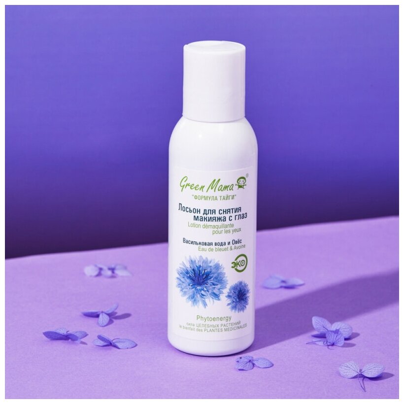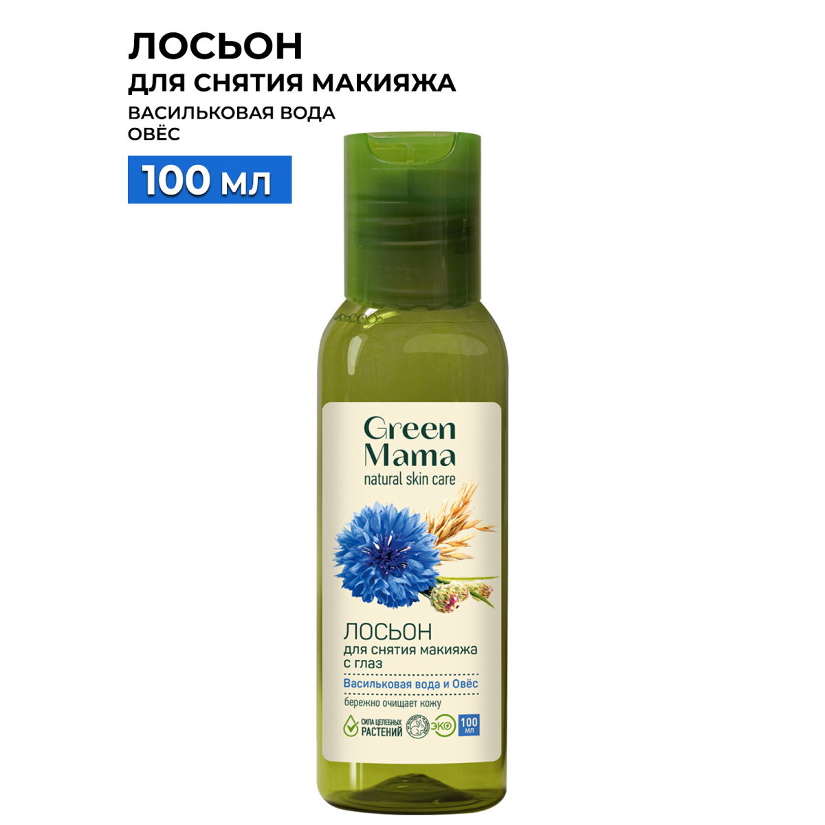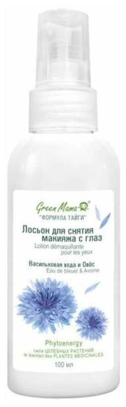Лосьон Green Mama для снятия макияжа с глаз Васильковая вода и Овес 100 мл (115)