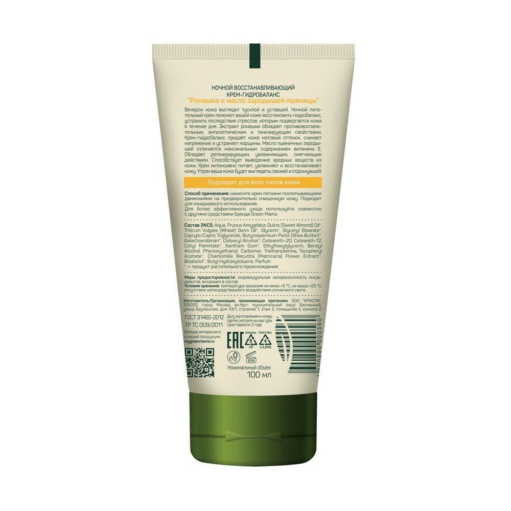 Крем-гидробаланс Green Mama Ромашка и Масло зародышей пшеницы Ночной Восстанавливающий 100 мл (262g)