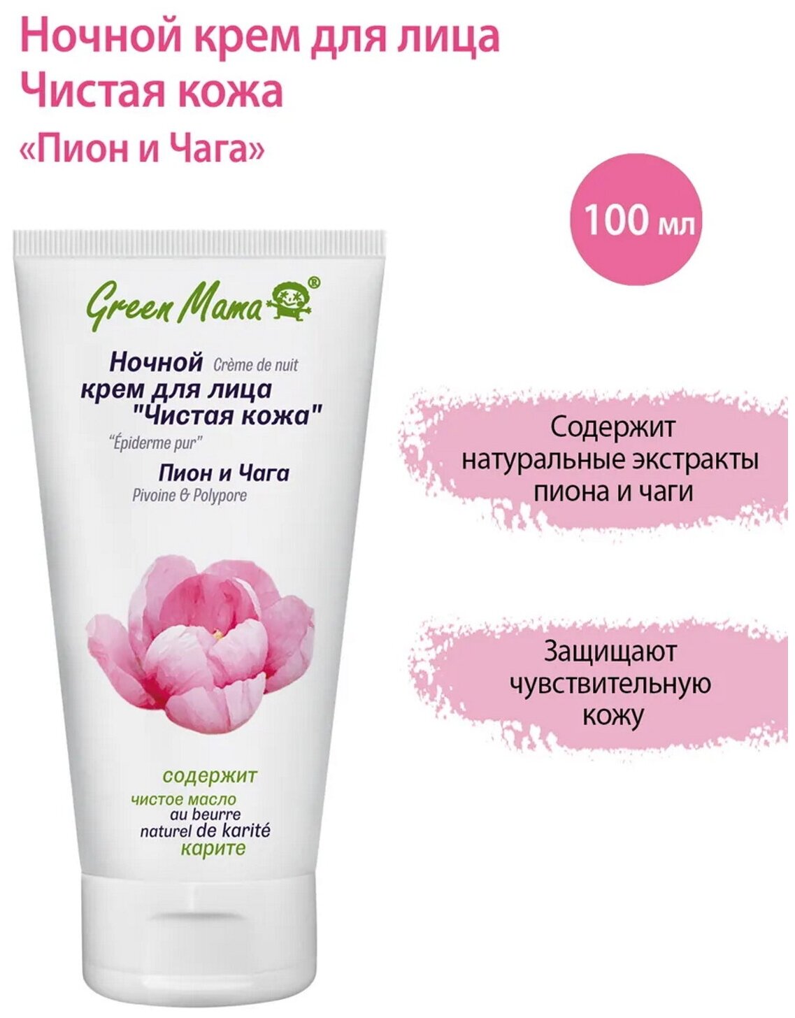 Крем Green Mama Пион и Чага Ночной Чистая кожа 100 мл (264g)