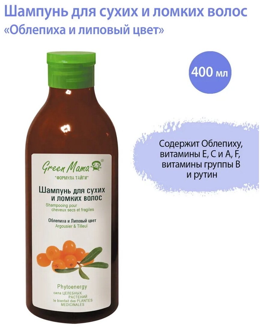 Шампунь Green Mama для сухих и ломких волос Облепиха и липовый цвет 400 мл (136)