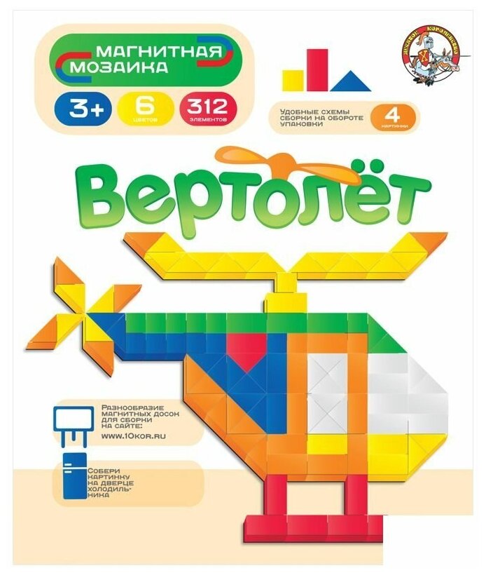 Набор мягких магнитных деталей Вертолет из 312 элементов, 5 геометрических форм и 6 цветов предоставляет неограниченный простор для творчества, превращая мозаику в плоский конструктор. Удобные схемы сборки представлены на обороте коробки. Собирая мозаику, ребенок развивает художественное воображение и творческие навыки, учится усидчивости, тренирует мелкую моторику рук.