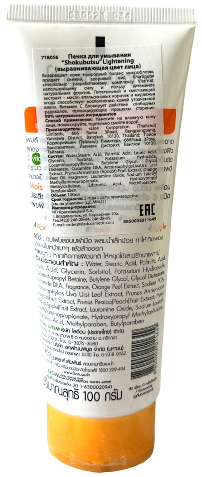 Пенка Skin Lightening выравнивающая Апельсин Lion Shokobutsu 100 гр skin Lightening апельсин 100 г