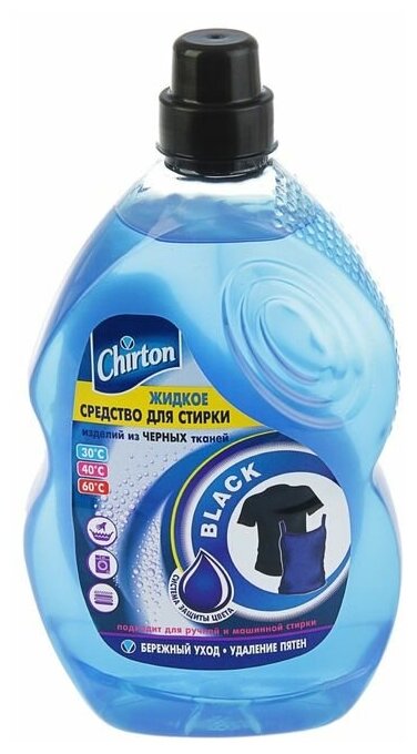 Средство "Chirton" предназначено для стирки белья, одежды и других изделий из цветных тканей. Может использоваться как для ручной стирки, так и для стирки в автоматических стиральных машинах. Хорошо растворяется в воде и отстирывает самые различные загрязнения. Способствует сохранению насыщенного черного цвета. Полностью выполаскивается из тканей. Придаёт тканям свежий аромат.