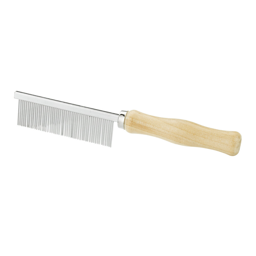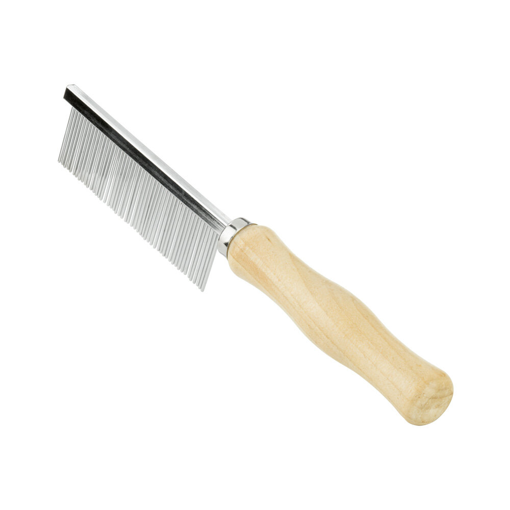 Расческа Триол для собак с частым зубом деревянная ручка (22282) (размер: 250 мм.)