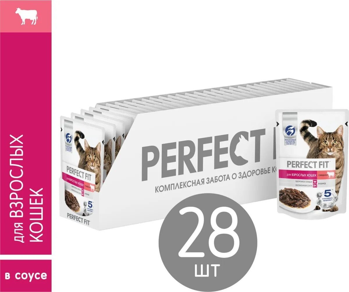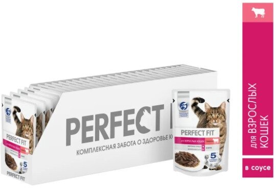 Влажный корм Perfect Fit для взрослых кошек говядина 85г (42743)