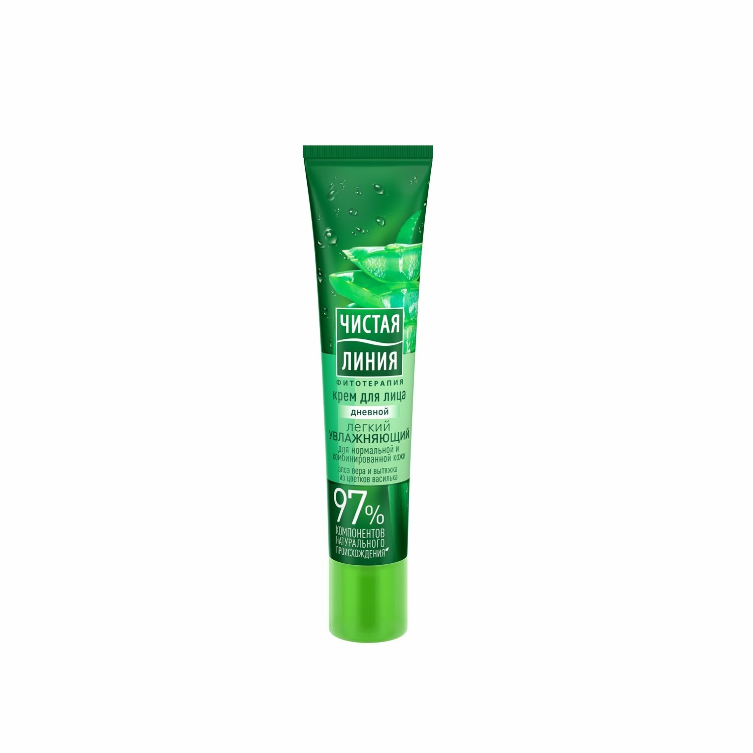 Увлажняющий дневной крем для лица с Алоэ-вера и вытяжкой из цветков василька бережно ухаживает за кожей, регулирует выработку себума и обеспечивает надежную защиту от негативного воздействия внешних факторов.