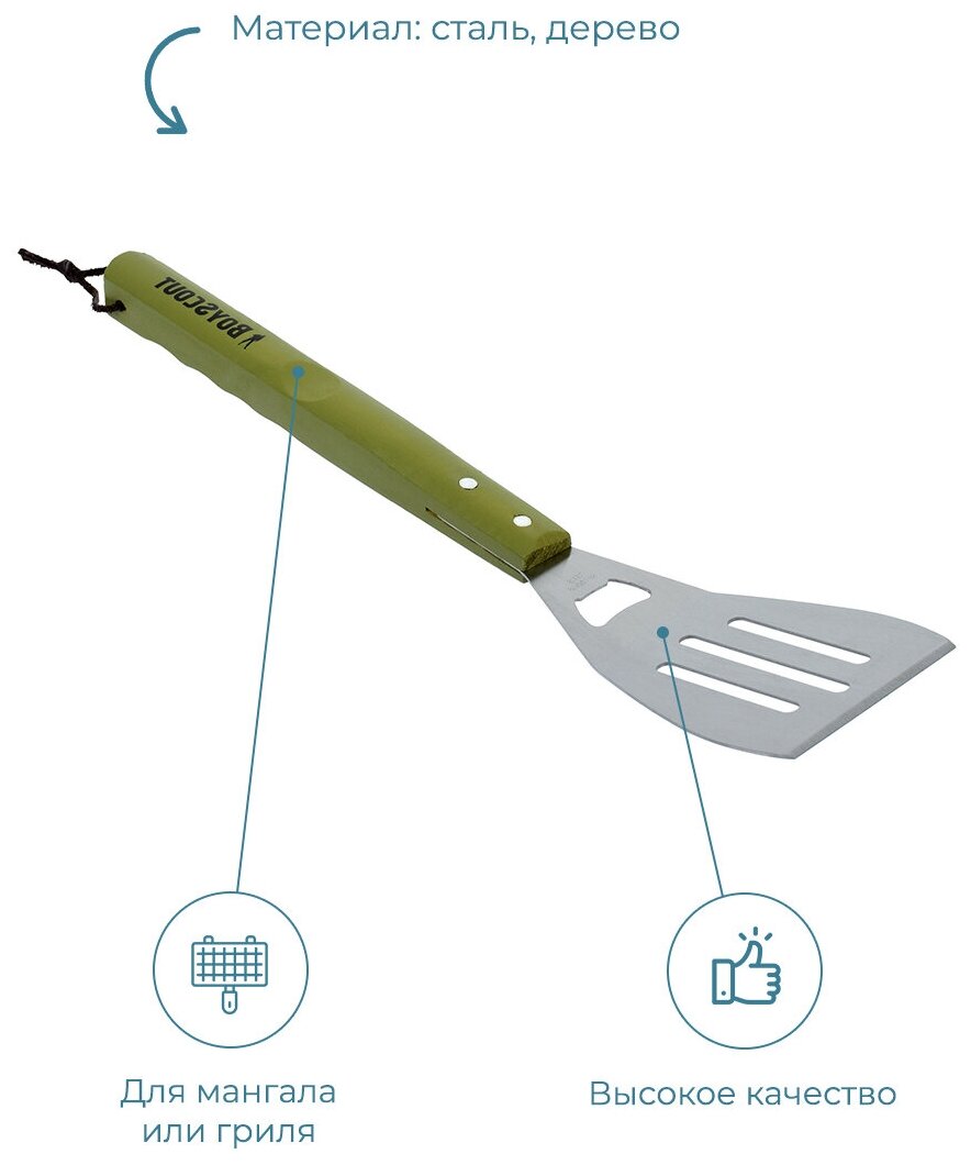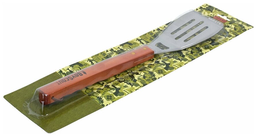 Лопатка Boyscout используется для приготовления пища на открытом воздухе. Изготовлена из нержавеющей стали. Имеет деревянную ручку.