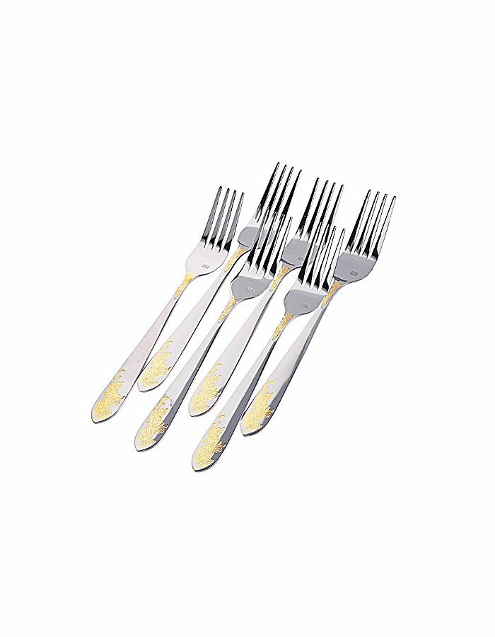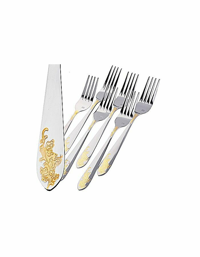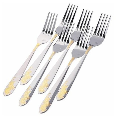 Набор из 6-ти столовых вилок MAYER&BOCH выполнен из высококачественной нержавеющей стали, которая проходит тщательный технический контроль. Качественная полировка обеспечивает высокую степень гигиеничности приборов. Приборы из нержавеющей стали отличаются высокими антикоррозионными свойствами и значительной устойчивостью к воздействию кислот и щелочей. Такая сталь не изменяет вкус и цвет пищи, не выделяет вредных веществ. Ручки вилок украшены элегантным золотым узором, выполненным по технологии плазменного напыления и обеспечивающим высокую износостойкость покрытия. Красивый и элегантный набор столовых вилок MAYER&BOCH станет настоящим украшением любого праздничного или обеденного стола, а эстетичность столовых приборов удовлетворит запросы даже самых требовательных и взыскательных покупателей. Подходит для мытья в посудомоечной машине.