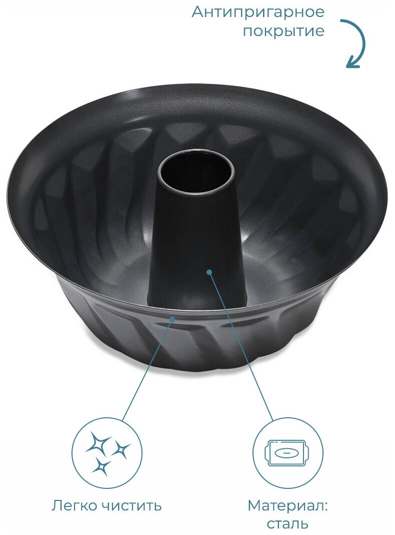 Форма отлично подходит для выпечки сладких и соленых блюд. Имеет высококачественное антипригарное покрытие, которое препятствует пригоранию. Форма прекрасно подходит для всех типов плит, можно мыть в посудомоечной машине.