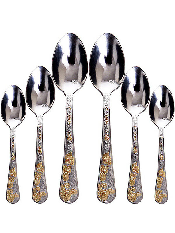 Набор из 6-ти столовых ложек MAYER&BOCH выполнен из высококачественной нержавеющей стали, которая проходит тщательный технический контроль. Качественная полировка обеспечивает высокую степень гигиеничности приборов. Приборы из нержавеющей стали отличаются высокими антикоррозионными свойствами и значительной устойчивостью к воздействию кислот и щелочей. Такая сталь не изменяет вкус и цвет пищи, не выделяет вредных веществ. Ручки ложек украшены элегантным золотым узором, выполненным по технологии плазменного напыления и обеспечивающим высокую износостойкость покрытия. Красивый и элегантный набор столовых ложек MAYER&BOCH станет настоящим украшением любого праздничного или обеденного стола, а эстетичность столовых приборов удовлетворит запросы даже самых требовательных и взыскательных покупателей. Подходит для мытья в посудомоечной машине.