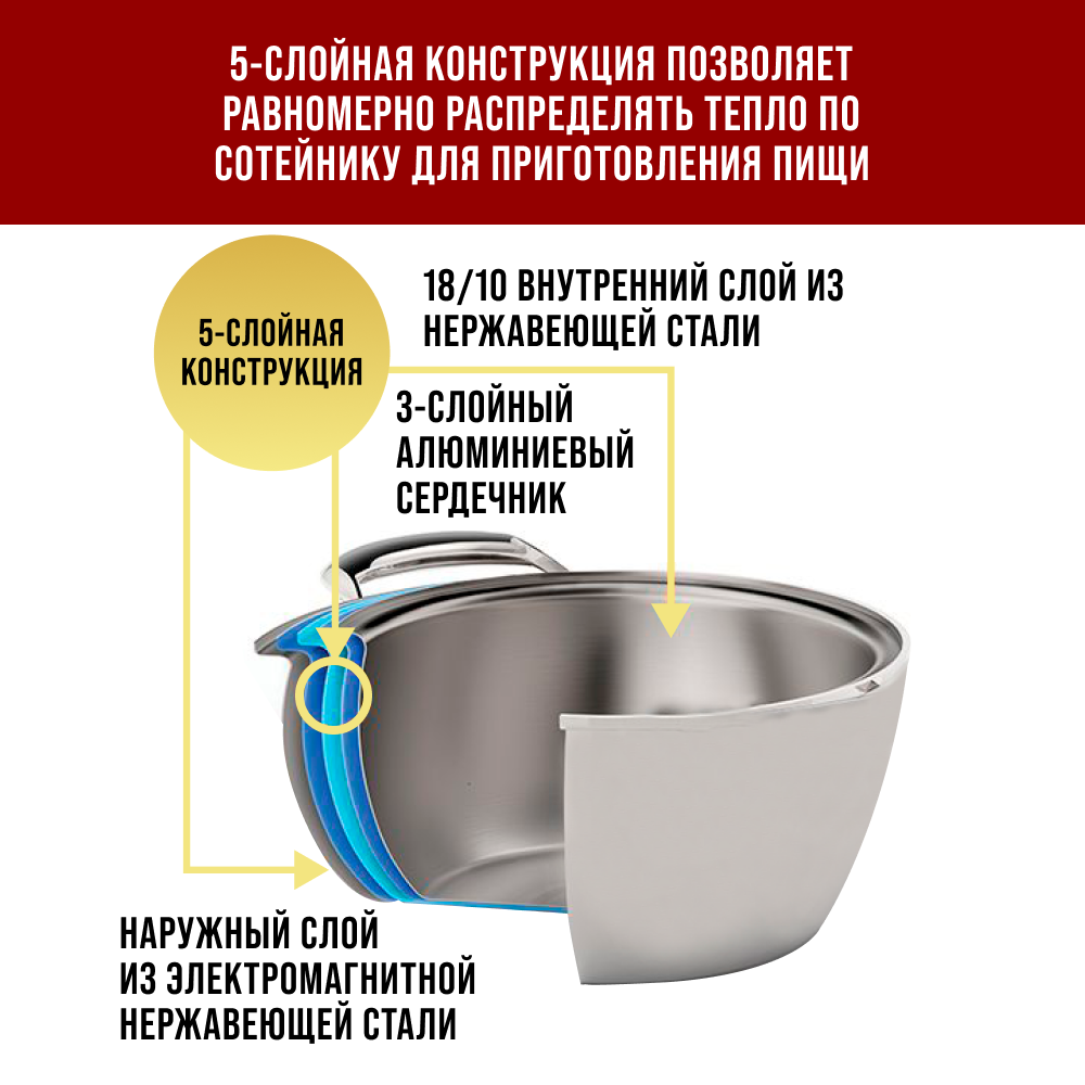 Высококачественная посуда от популярного производителя. Используя сотейник вы сможете приготовить различные соусы, которые будут не только вкусными, но и полезными, благодаря специальной поверхности. Сотейник с прозрачной крышкой, оснащен ручкой из металла. Высокие бортики остановят пролив содержимого на плиту во время приготовления. Внешнее покрытие отличается не только красивым внешним видом, но и устойчивостью к царапинам. Имеет многослойное термоаккумулирующее дно с прослойкой из алюминия, которое обеспечивает равномерное распределение тепла. Кастрюля подходит для всех видов плит и пригодна для мытья в посудомоечной машине. Также стоит отметить, что сотейник можно отчистить достаточно быстро от загрязнений.