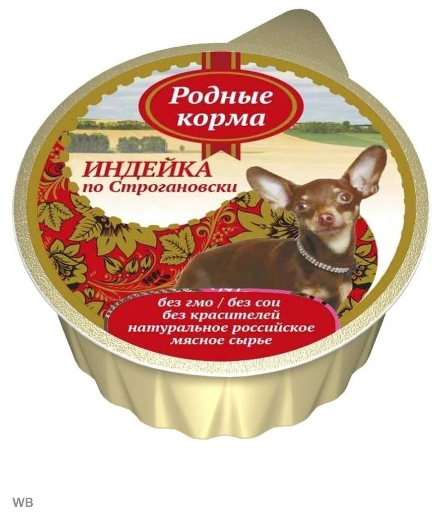 Влажный корм Родные корма Елец для взрослых собак индейка по строгановски 125г по-строгановски