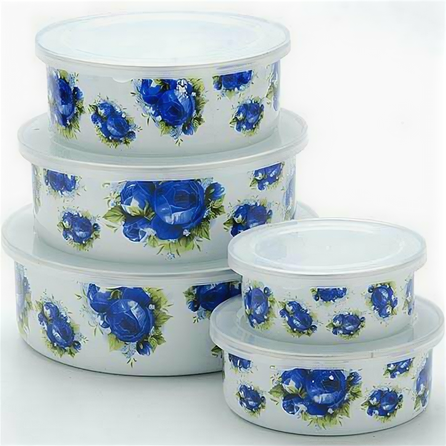 Набор мисок состоит из 5 мисок, каждая с индивидуальной крышкой, поверхность органично украшена ярким изображением Розы. Наши салатницы приятно взять в руки, они будут незаменимыми и на кухне, и в дороге. Крышка надежно защитит содержимое от протекания. После использования салатницы не займут у вас много места.