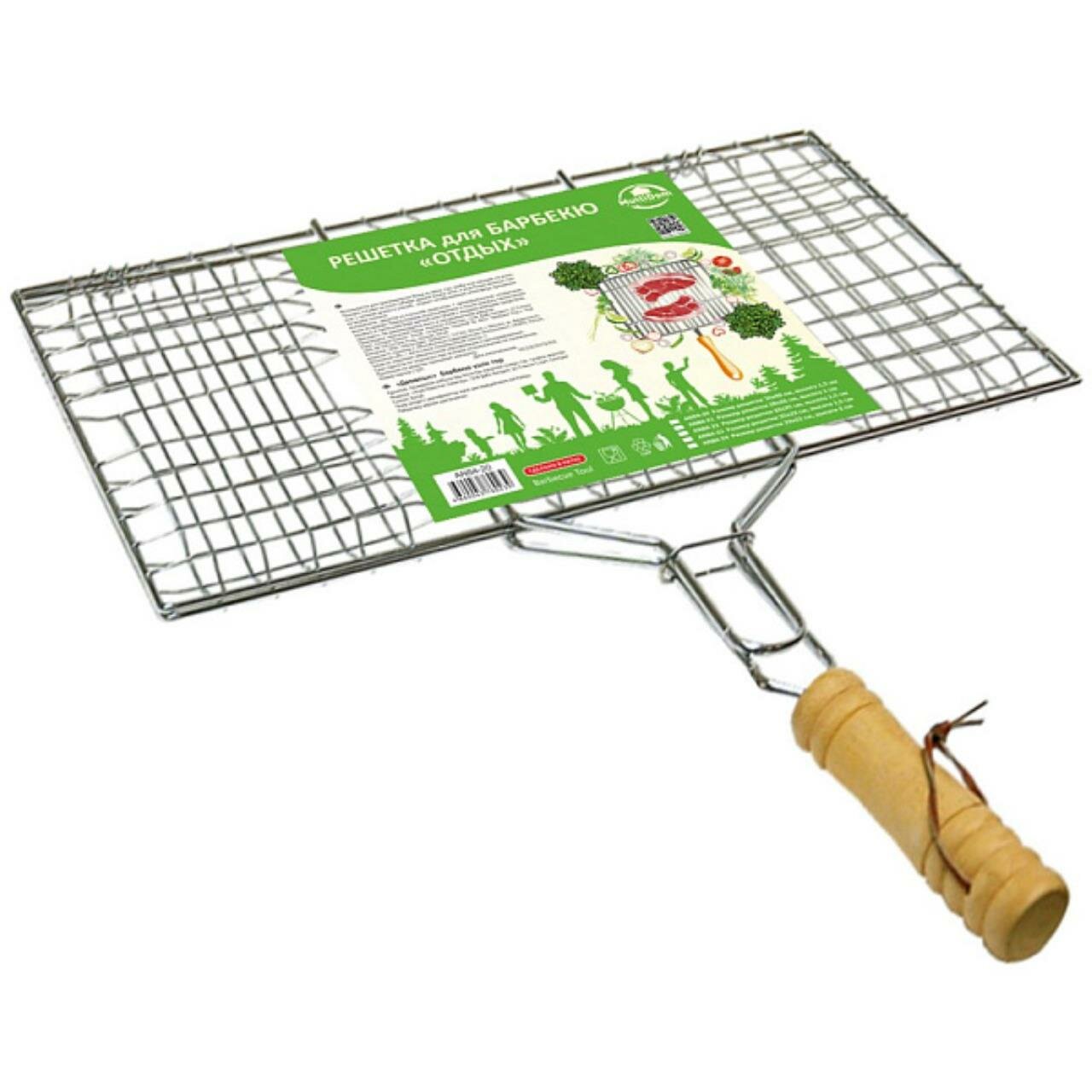 Используется для приготовления блюд из мяса, кур, рыбы или овощей на углях. Процесс готовки на углях соберет друзей вокруг огня, а вкус блюд нежных, сочных, с запахом дымка и специй, создаст незабываемую атмосферу праздника на вашем пикнике. Изготовлено: решетка из стальной хромированной проволоки, ручка из дерева. После применения рекомендуется вымыть с использованием жидких моющих средств.