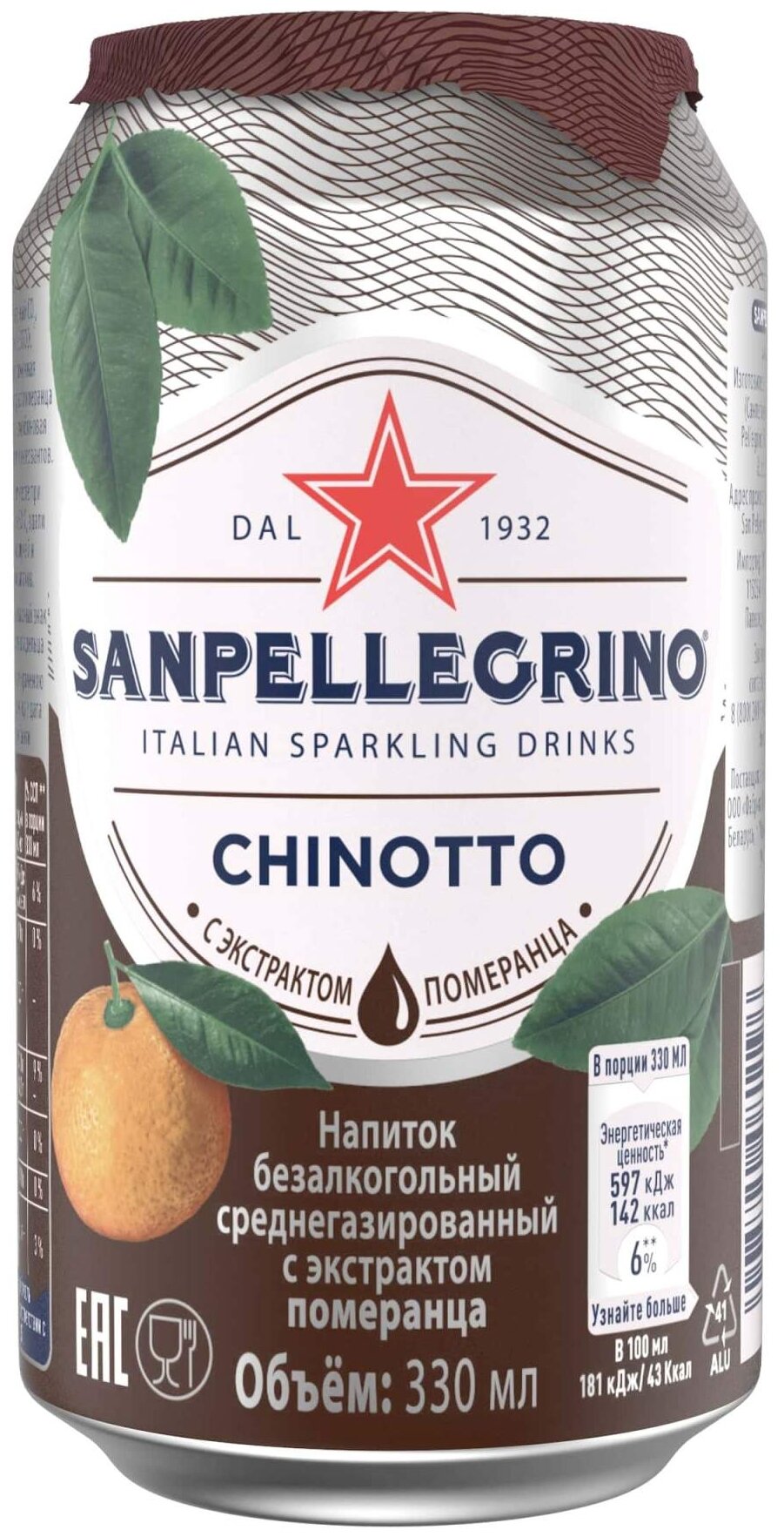 Фруктовый напиток San Pellegrino - знаменитый во всем мире освежающий газированный напиток с соком фруктов, производится с 1930-х годов в Италии. Напиток содержит натуральный сок сочных и спелых сицилийских фруктов, собранных вручную, а низкое содержание углеводов и сахара делает напиток San Pellegrino доступным даже для тех, кто придерживается диеты. Основой для создания напитка служит минеральная вода, баланс между нежными пузырьками и ароматом придает напитку неповторимый вкус. Фруктовые напитки San Pellegrino отлично утоляют жажду и являются прекрасным дополнением к ежедневным трапезам.