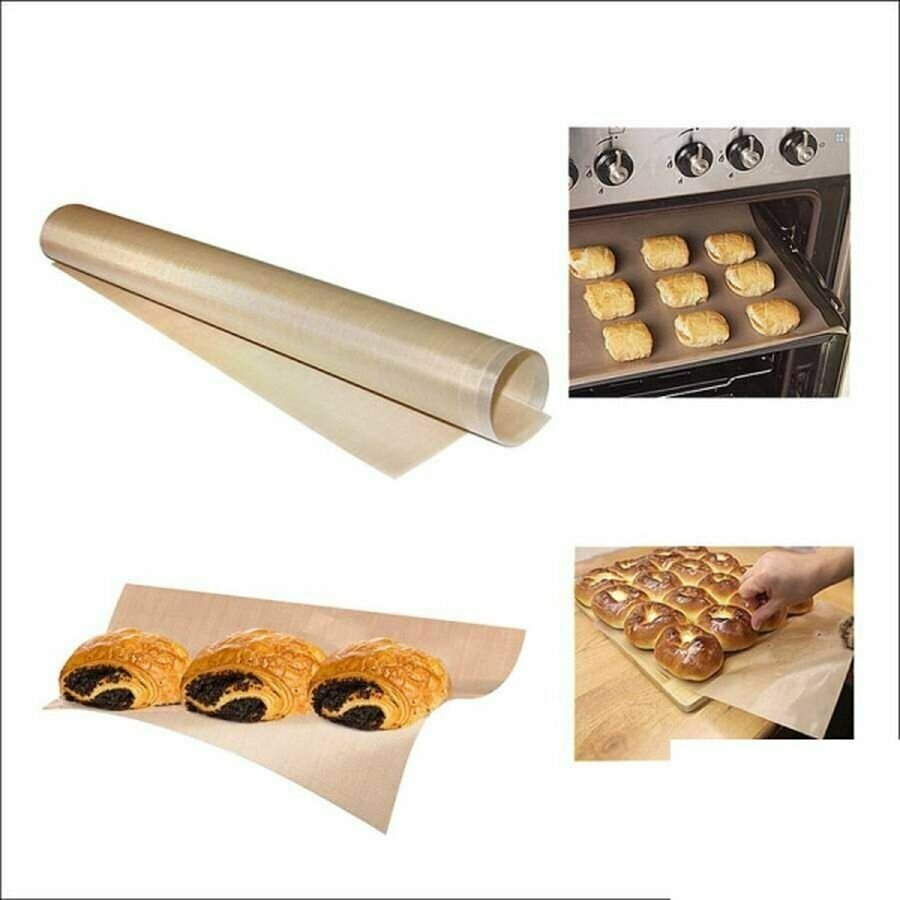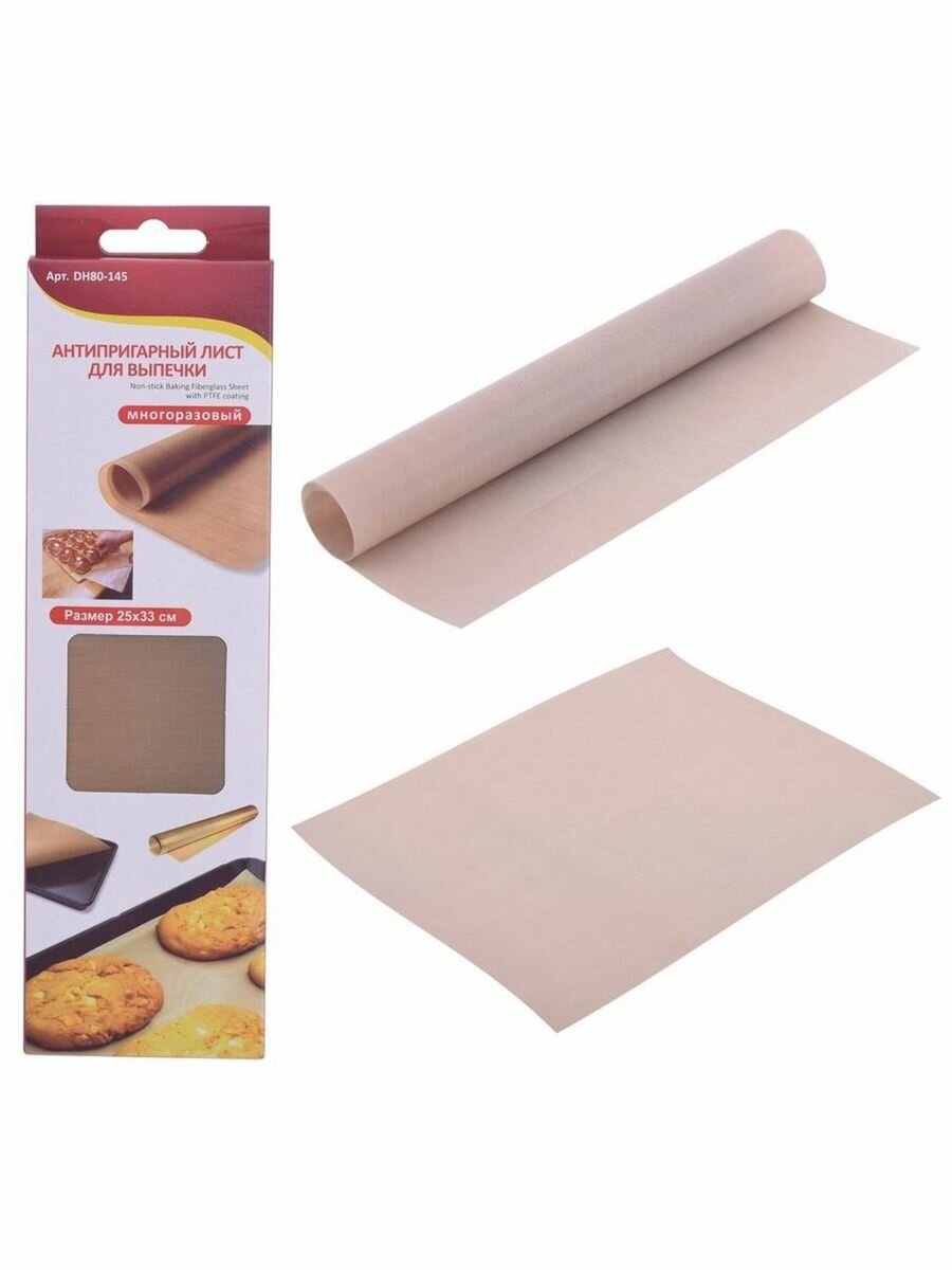 Предназначен для выпечки в духовках электрических и газовых плит, СВЧ-печей. Используется для приготовления пищи в посуде, как в духовках, так и на варочной панели. Исключает прилипание и пригорание пищи. Антипригарный лист полностью исключает возможность прилипания выпечки к противню, исключает применение масла. Возможна раскатка теста на полотне антипригарного листа, также можно использовать для заморозки продуктов в морозильной камере. Легко моется водой с любым жидким моющим средством и мягкой губкой, не впитывает запахи. Изделие выполнено из тефлонового листа, армированного стекловолокном. Используемый в производстве тефлон выдерживает температуру до 260 С, безопасен для контакта с пищевыми продуктами, а также позволяет готовить без использования масла так как обладает отличными антипригарными свойствами. Стекловолокно находится внутри тефлона делая лист более прочным и долговечным при этом не влияет на гибкость листа и не контактирует с пищей. Состав: тефлон армированный стекловолокном. Имитирует плотную бумагу. ВНИМАНИЕ: Не режьте выпечку ножом на листе. Не используйте абразивные материалы и жесткие щетки, повреждение тефлонового слоя приведет к потере изделия антипригарных свойств.