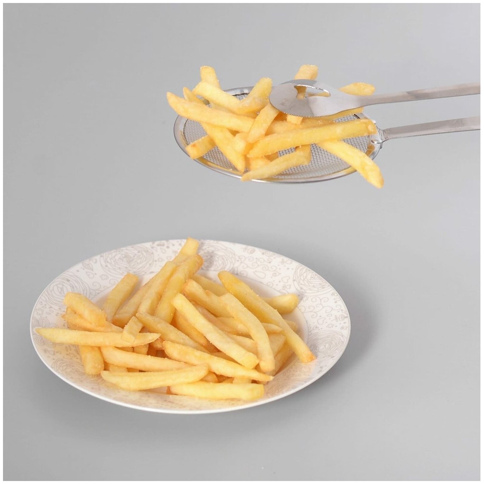 Шумовка-щипцы идеально подходит жарки и фритюра. Жир и масло стекают обратно в посуду, а конструктивная особенность шумовки с функцией щипцов поможет придержать вынимаемые продукты. С помощью этой шумовки Вы сможете извлечь из кипящего масла картофель, пончики, беляши, чебуреки, хворост и т.п. После применения рекомендуется промыть губкой с использованием жидких моющих средств. Хранить в сухом помещении.