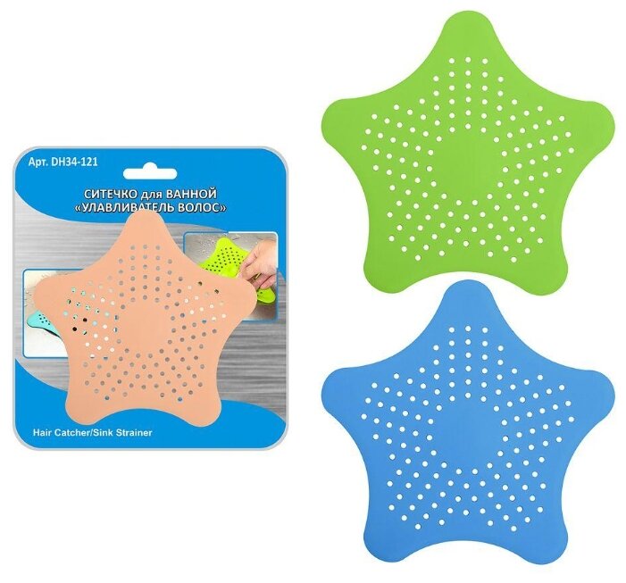Ситечко предназначено для профилактики засоров в трубах. Идеальное приспособление для улавливания волос и мелких частиц мусора в ванной, душевой кабине или раковине. С помощью присосок ситечко прочно фиксируется на месте, не позволяя волосам и мусору проникать в водосток.
