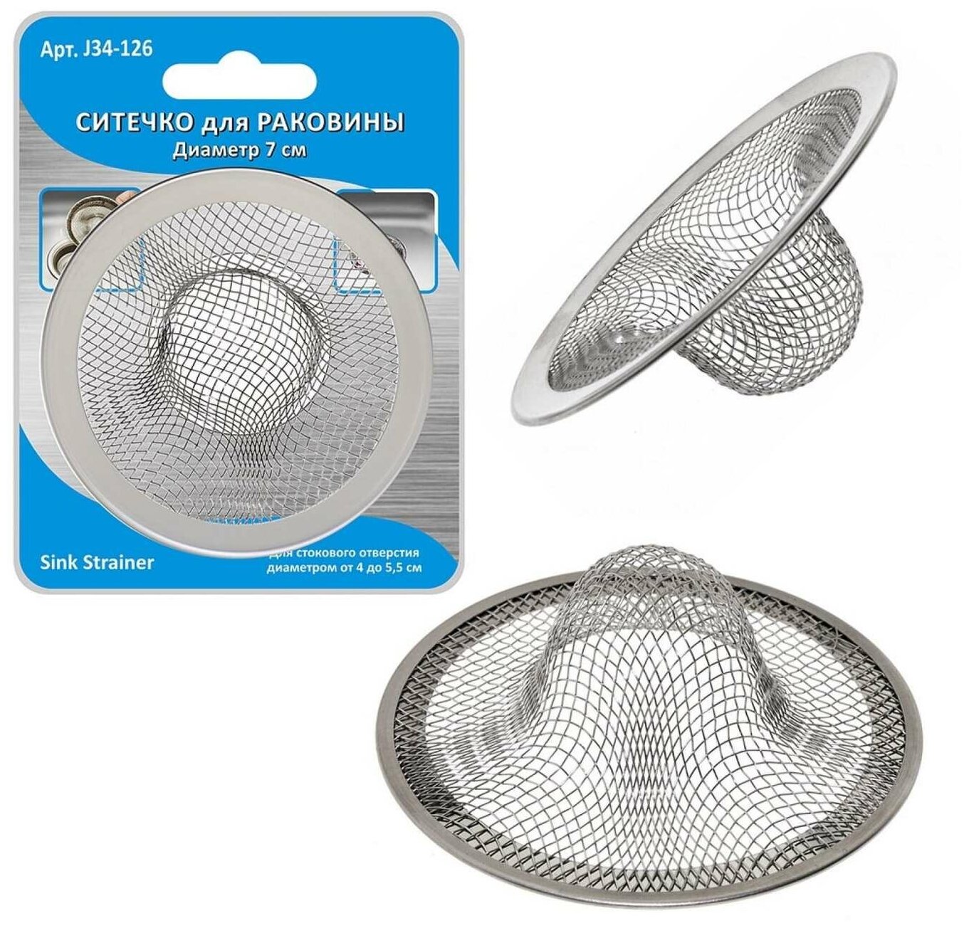 Ситечко для раковины предназначено для профилактики от засоров в трубах. Частицы пищи задерживаются в ситечке и их легко можно удалить. Изготовлено из коррозионностойкой (нержавеющей) стали. Подходит для стокового отверстия диаметром от 4,5 см до 5,5 см, глубиной не менее 2,5 см.