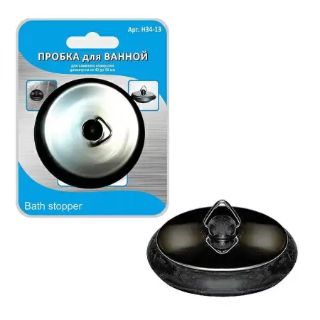Используется для перекрывания слива воды в ванне или раковине. Изготовлено: пробка из резины (TPR),крышка из коррозионностойкой (нержавеющей) стали. Подходит для сливного отверстия диаметром от 42 до 50 мм.
