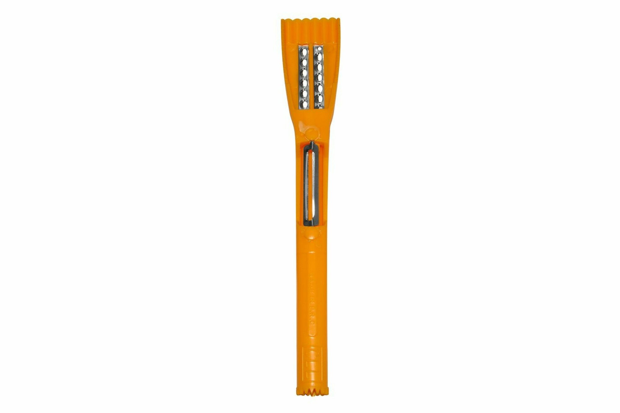 Овощечистка-резка 5в1 - универсальное кухонное приспособление, которое вполне сможет заменить Вам кухонный комбайн! С помощью этого приспособления вы легко сможете: - удалить сердцевину у яблок -очистить кожуру с овощей и фруктов -натереть корейскую морковь - почистить рыбу -нашинковать рифленые овощи. После использования просто промойте овощечистку-резку в проточной воде, можно с использованием жидких моющих средств.