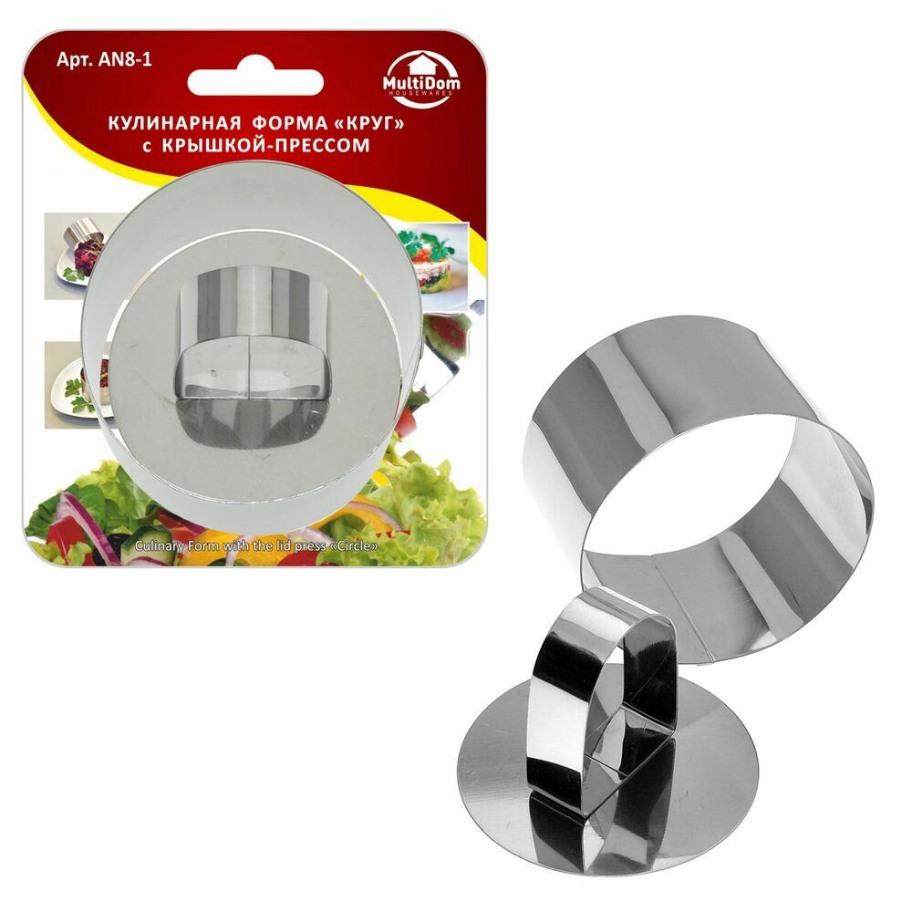 - Кулинарная форма МУЛЬТИДОМ Круг с крышкой-прессом, 10х4см, нерж.ст.