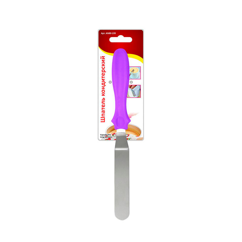 Что используется для декорирования тортов и выпечки? Одним из основных инструментов является кондитерский шпатель – приспособление, способное сгладить неровности и равномерно нанести крем, сливки, шоколад на торт.Металлический шпатель – не только приспособление длдя кондитеров, с его помощью можно переворачивать блинчики, оладьи, котлеты и другие готовящиеся блюда.Преимущества изделия в том, что оно:универсально, может использоваться не только в кондитерских, но и в других целях;изготовлено из коррозионностойкой стали, которая не портится под воздействием температур, влаги и моющих веществ;имеет пластмассовую ручку, которую удобно держать во время работы.Кондитерский шпатель – действительно нужный инструмент, который поможет с приготовлением и декорированием блюд. Подробные характеристики товаров представлены в оптовом каталоге компании.Более точную информацию о товаре уточняйте у операторов и консультантов торгового зала. Изображение может отличаться от представленного на витрине.