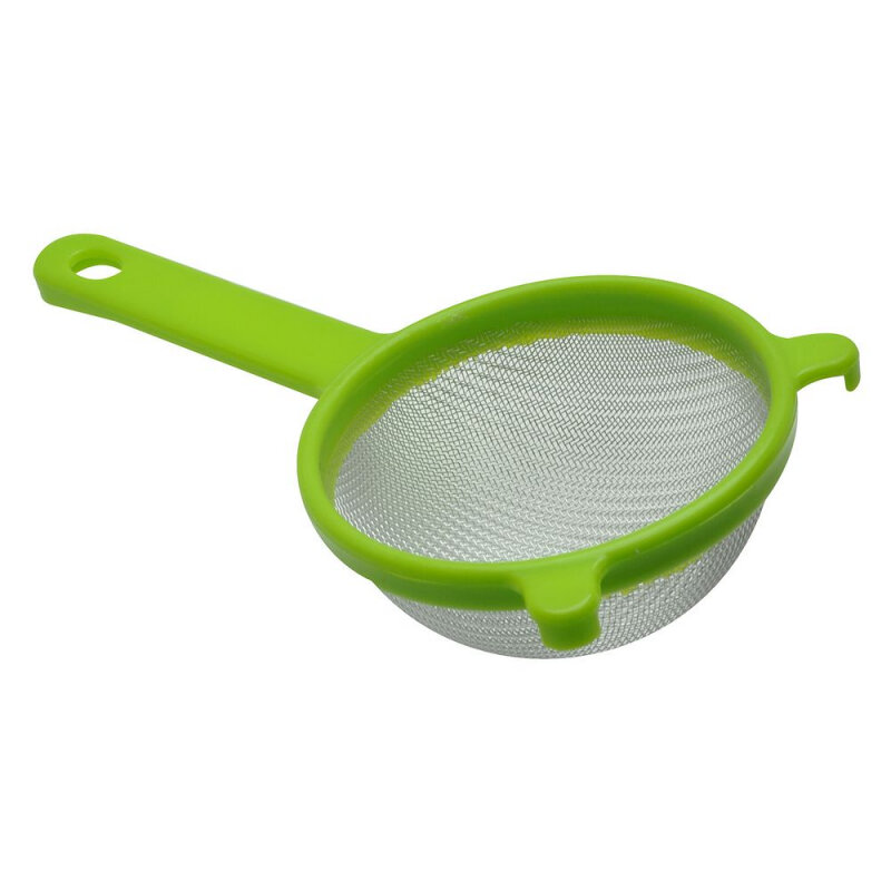 Используется для процеживания компотов, морсов, чая, отваров трав и т.п. Изготовлено: сетка из алюминия, ободок и ручка из пластмассы (полипропилен). Диаметр 18 см.