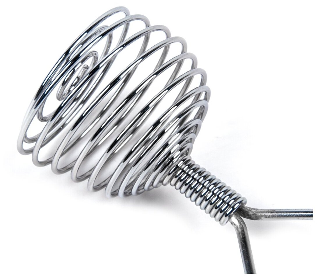 Венчик в виде спирали удобен для небольших емкостей, аккуратно взбивает содержимое и не разбрызгивает его. Для взбивания металлическим венчиком лучше всего использовать пластмассовую, стеклянную или металлическую тару без защитного покрытия.
