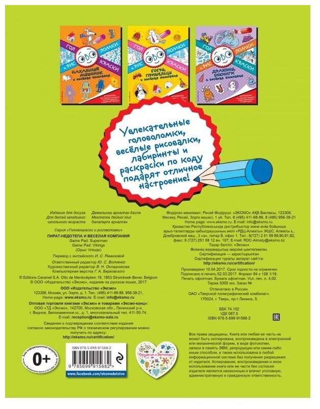 На сегодняшний день товар «Раскраска с играми и заданиями Эксмо Пират-недотепа и веселая компания (978-5-699-91568-2)» можно купить с кешбеком в 1 магазине: Яндекс.Маркет