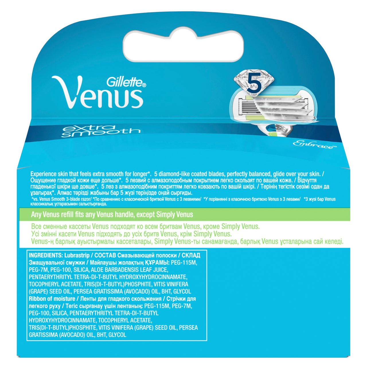 Сменные кассеты Venus Embrace для чувствительной кожи протестированы дерматологами, имеют пять лезвий и обеспечивают в восемь раз более гладкое скольжение с меньшим ощущением раздражения.
