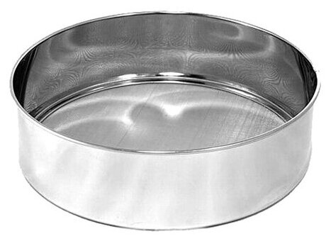 Обыкновенное сито для муки или решето - самое простое и известное приспособление, которое уже много столетий используется хозяйками для приготовления теста. Мука просеивается не только для того, чтобы удалить из нее посторонние включения, но и для того, чтобы насытить ее кислородом – сделать более рыхлой. Просеивание муки через сито придаст ей воздушность, то есть между крупинками муки будет больше пустых мест с воздухом, что сделает тесто из такой муки более нежным, легким и воздушным, а сама выпечка быстрее поднимается и получается более однородной и красивой. После использования промойте сито в теплой воде, можно с использованием жидких моющих средств и просушите. Диаметр 24см, высота 5,5 см. Изготовлено из коррозионностойкой (нержавеющей) стали.