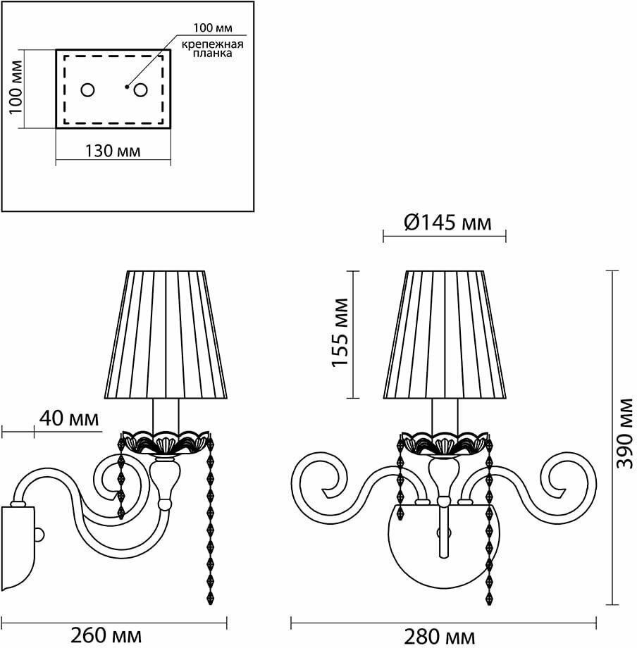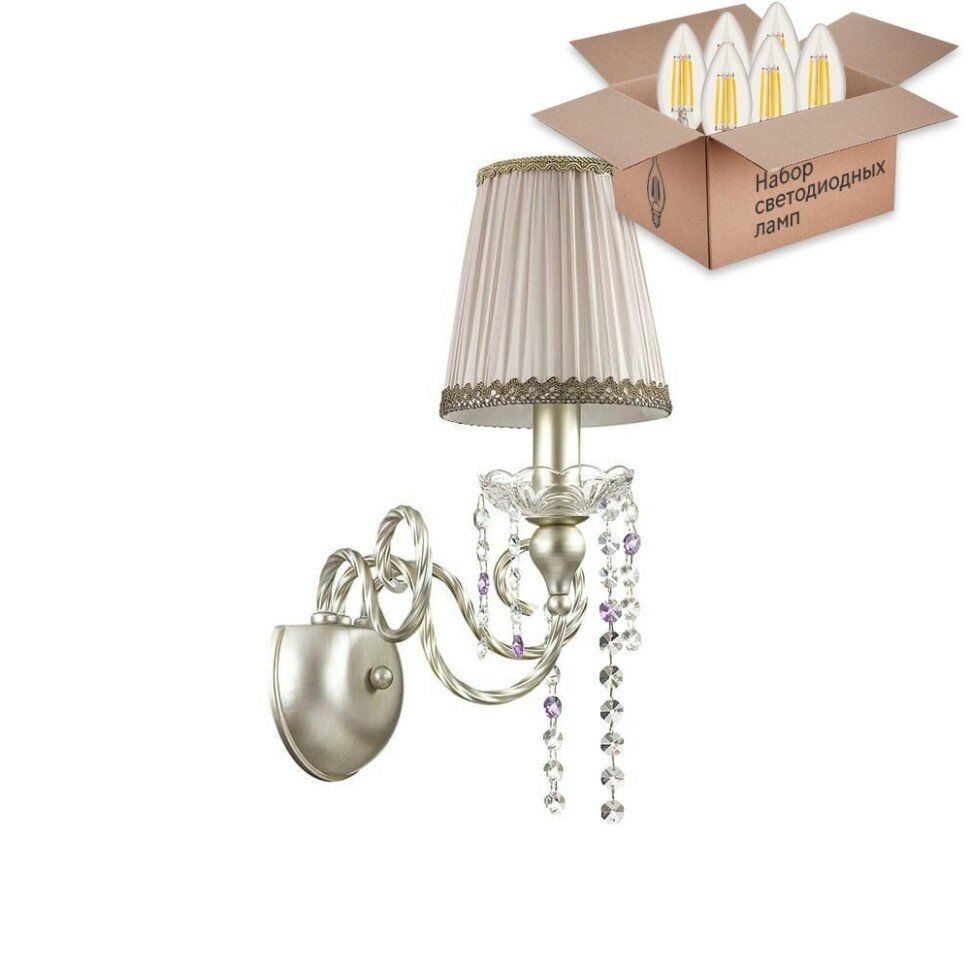 "Бра 3390/1W серии Aurelia оформлена в классическом стиле. Основание светильника из металла с покрытием ""матовое золото"" с серебристой патиной. Светильник украшен хрустальными подвесками, стеклянной чашей и абажуром из тонкой плиссированной ткани нежного пурпурного оттенка. Роскошное сочетание цветов и материалов ассоциируется с благородством, изобилием и достатком, и несомненно подчеркнет хороший тонкий вкус своего обладателя. Цоколь E14. Мощность 1*40W. Нет ламп в комплекте."