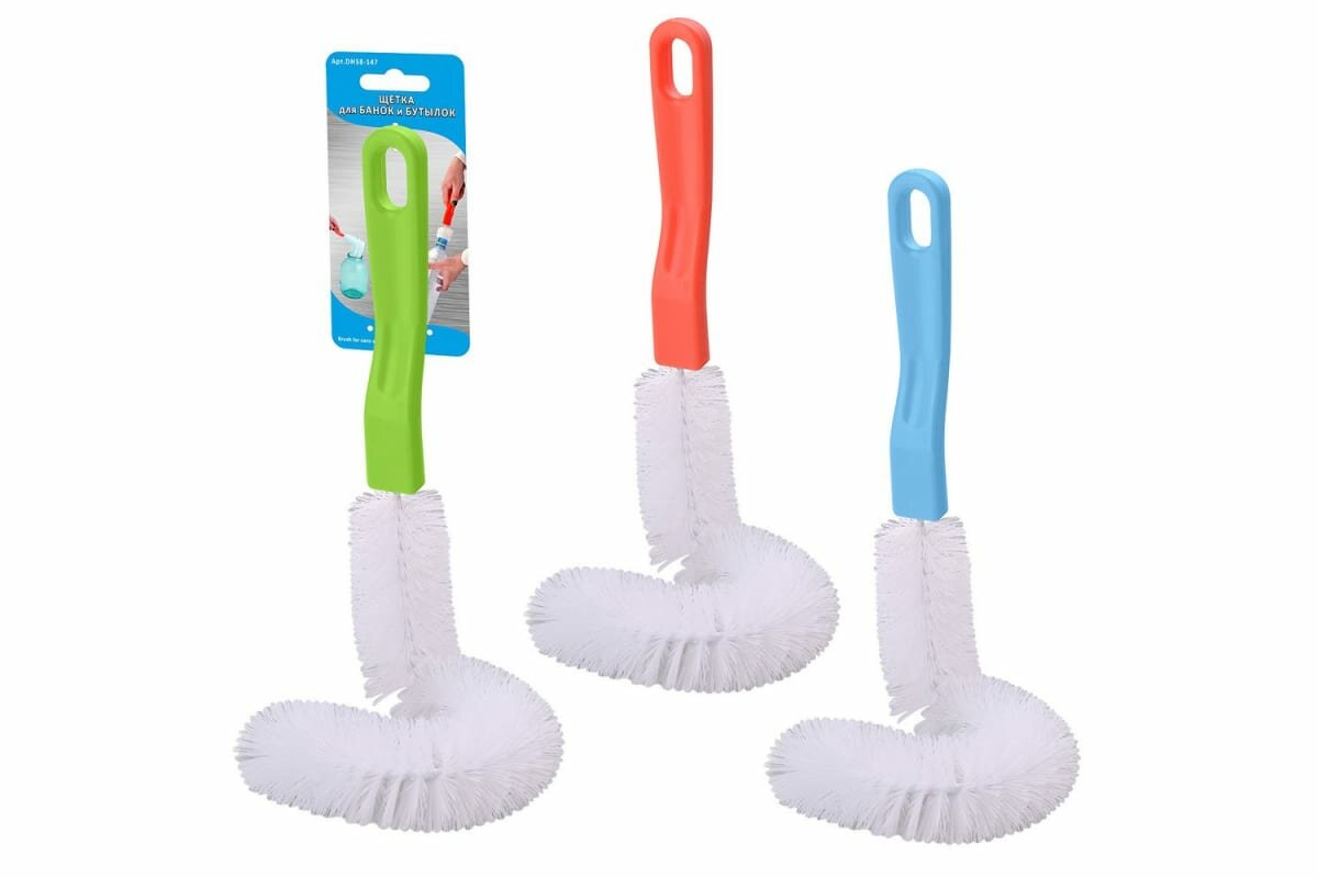 Щетка предназначена для мытья посуды продолговатой формы, куда не дотянуться обычной губкой. Идеально подходит для мытья бутылок, ваз, стаканов, банок и т. п. За счет своей длины и возможности сгибаться , Вы сможете согнуть ее , чтобы она приняла нужную Вам форму и отмыть дно у банки или другой посуды с широким дном, исключив при этом контакт с руками. Щетина щетки представляет собой жесткий пластиковый ворс, поэтому идеально очищает даже очень сильные загрязнения. Щетка для банок и бутылок станет Вашим незаменимым помощником на кухне!