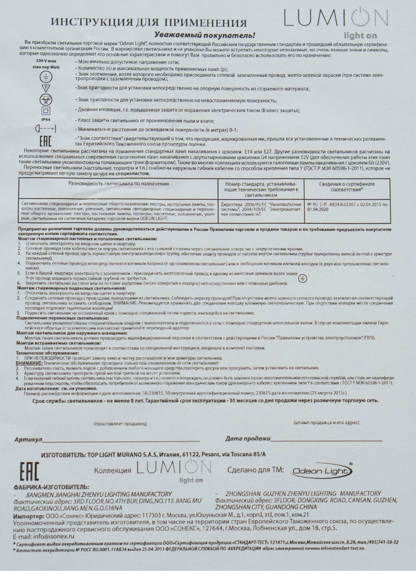 | Максимально допустимая мощность лампы (Вт) | 60 |