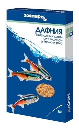 Универсальный корм для аквариумных рыб. Изготовлен методом естественной сушки из лучших сортов пресноводных рачков дафнии (Daphnia).Наиболее полноценный по биохимическому составу природный корм с высоким содержанием белка и минеральных веществ. Один из самых известных и популярных среди традиционных видов кормов.Рекомендуется для всех видов рыб, особенно для молоди и маленьких рыб, таких, как неоновые, гуппи, молли. Является подходящим кормом для маленьких лягушат и черепашек, может использоваться в качестве подкормки для декоративных птиц.
