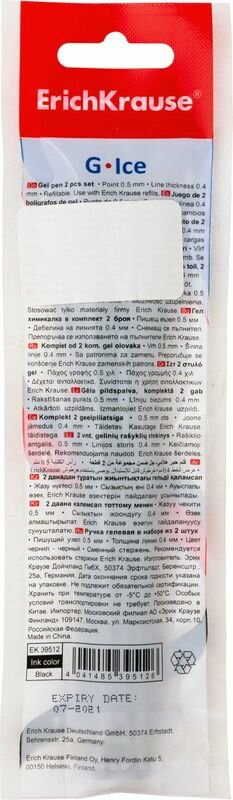 Ручка гелевая Erich Krause G-Ice 0.5 в наборе из 2 штук пакет (39512)