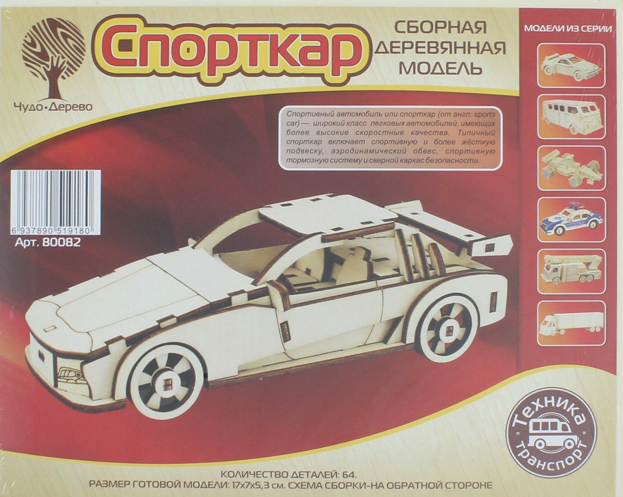 Сборная деревянная модель Чудо Дерево Спорткар (80082)