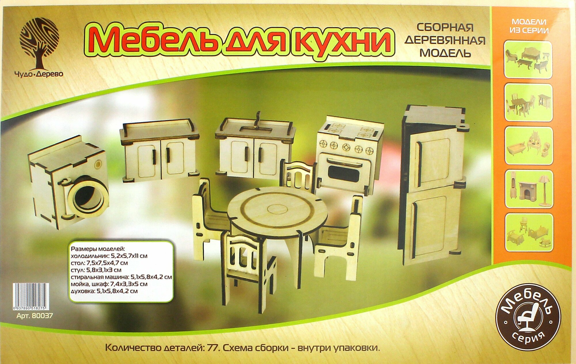 На сегодняшний день товар «Сборная деревянная модель Чудо Дерево Мебель для кухни (80037)» можно купить с кешбеком в 1 магазине: Яндекс.Маркет