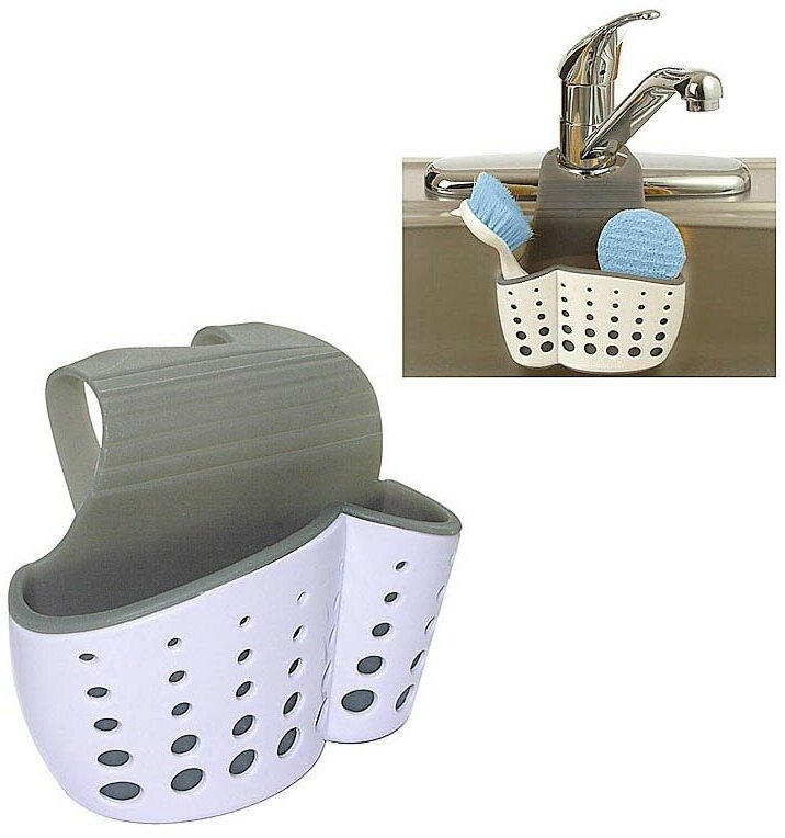 Удобная навесная подставка для хранения щетки (ершика) и губки поможет всегда держать под рукой необходимые принадлежности при мытье посуды. Достаточно закрепить ее с помощью петли у основания крана, опустить в раковину и вы уже никогда не потеряете ваших «помощников» на кухне. Изготовлено из пластмассы (ABS, TPR).