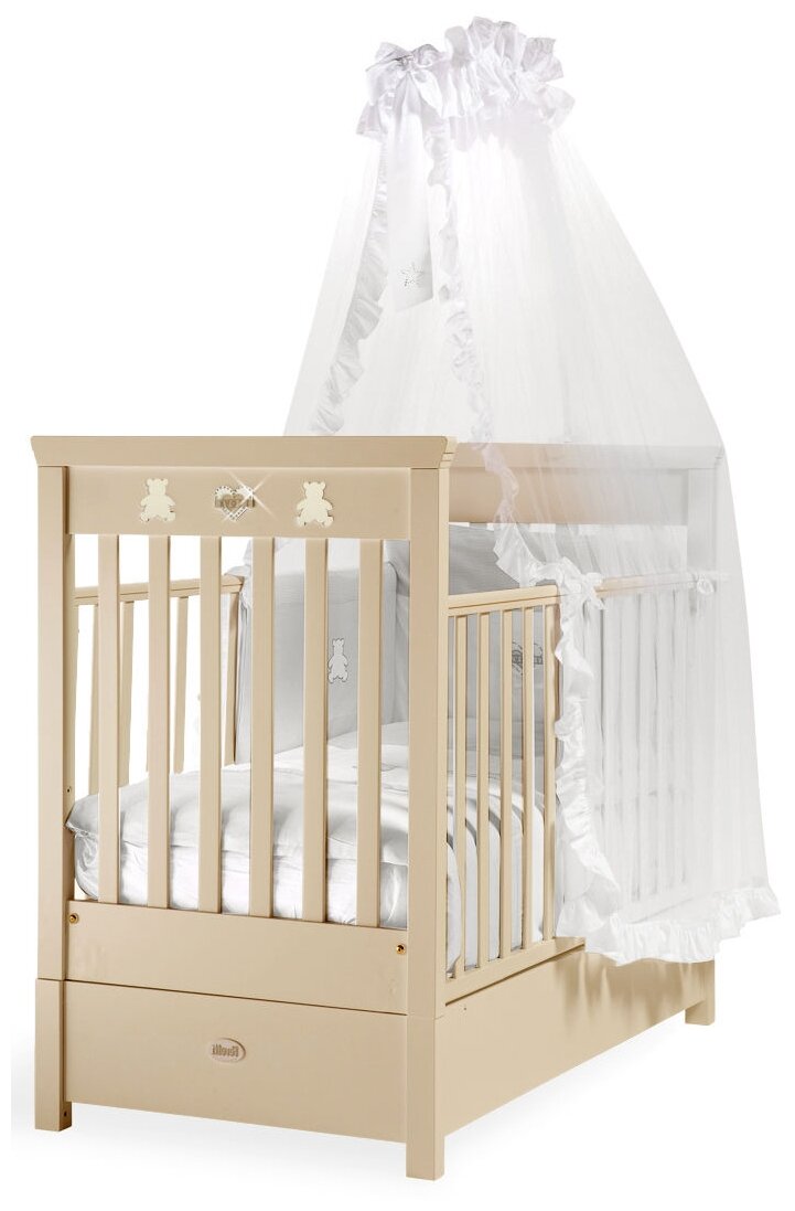 Кроватка Elite изготовлена из массива бука и покрыта антиаллергенным лаком, который совершенно безопасен для детей. Система Feretti Mistery Sistem (FMS), или система автоматического качания - запатентованная разработка компании. Благодаря оригинальному дизайну и особому устройству Feretti Mistery Sistem помогает мягко укачивать детей, при этом впервые можно полностью спрятать механизм качания в структуре кроватки.