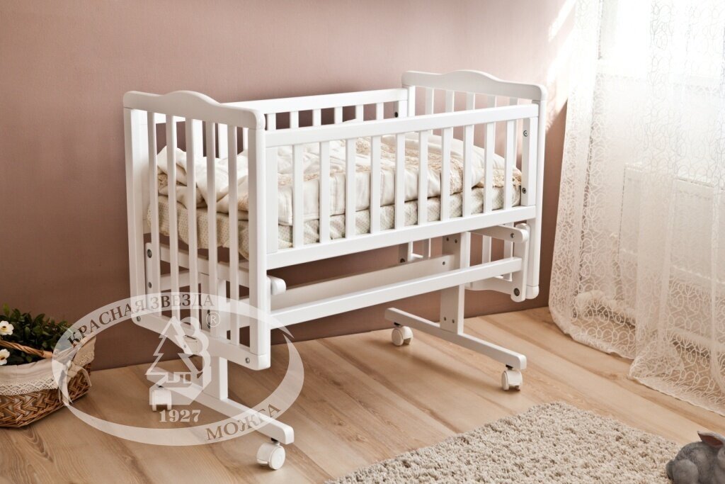 Кроватка Красная Звезда С852 Софьюшка слоновая кость – это изящная люлька, изготовленная на отечественном предприятии Красная Звезда на основе массива древесины лиственных пород, покрытой гипоаллергенными и нетоксичными лакокрасочными материалами. Кроватка имеет компактные размеры: ее можно легко уместить в самом маленьком помещении, а наличие колесиков позволяет без труда перемещать ее в нужное место. Кроватка Софьюшка оснащена поперечным маятниковым механизмом качания, который поможет быстро убаюкать малютку и подарит ей сладкий сон.