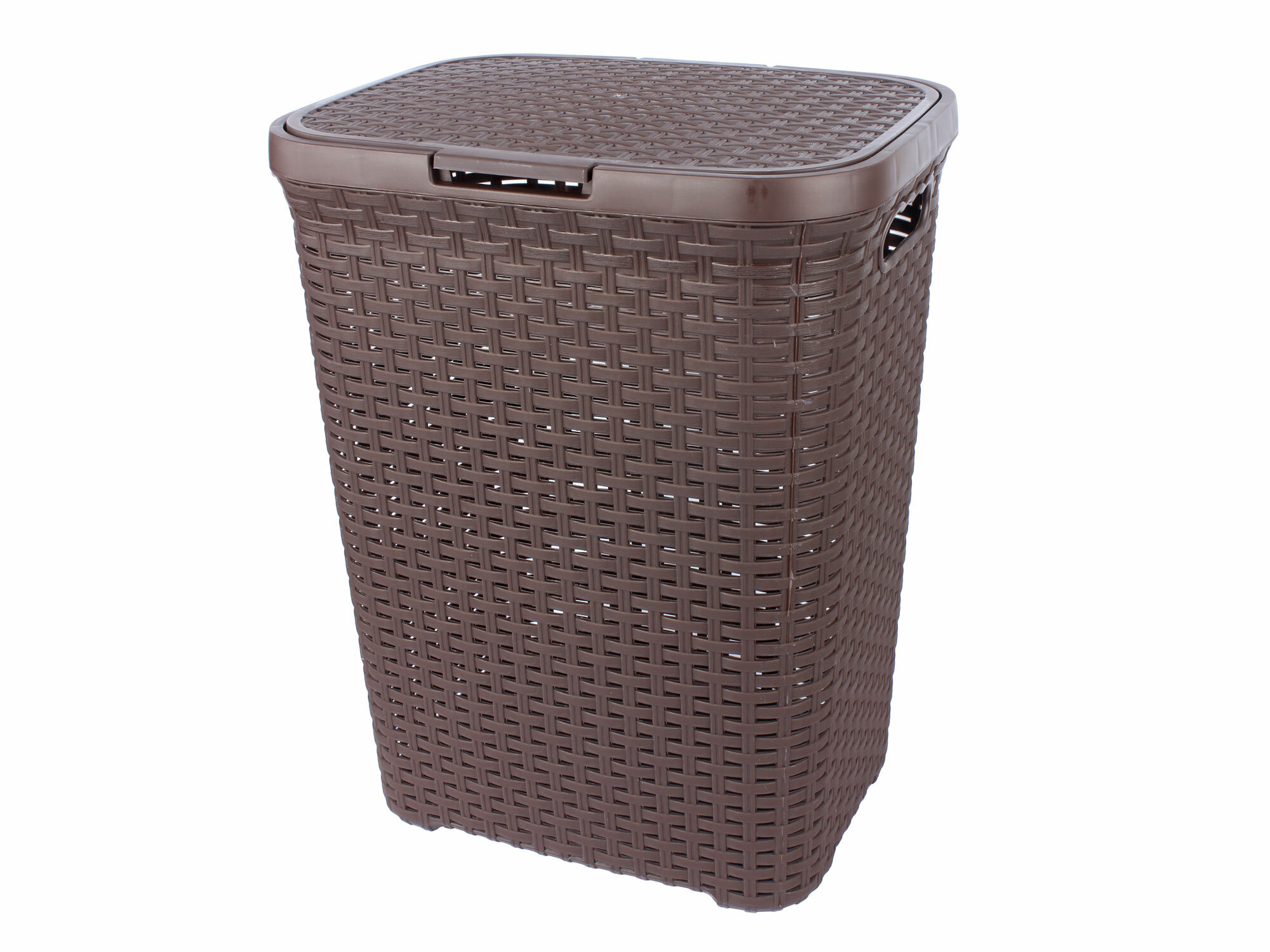 Плетёная структура обеспечивает вентиляцию, пластик не впитывает влагу и легко моется. Корзина долговечна, не боится воды и сохраняет форму.