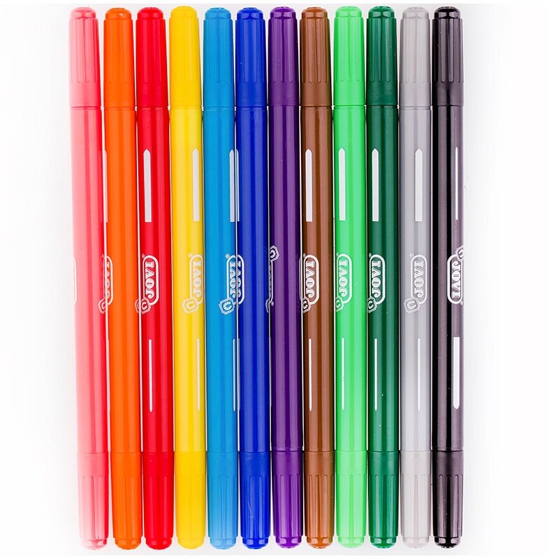 Набор двусторонних фломастеров с двумя пишушими узлами - 2,3 и 3,6 мм 12 цветов с особо прочным наконечником. Полностью безопасные гипоаллергенные чернила на водной основе с пищевыми красителями. Фломастеры выдерживают сильный нажим, наконечник не вдавливается внутрь. Специальные вентилируемые колпачки обеспечивают прохождение воздуха при случайном проглатывании. Легко смываются с кожи и отстирываются с большинства видов тканей.